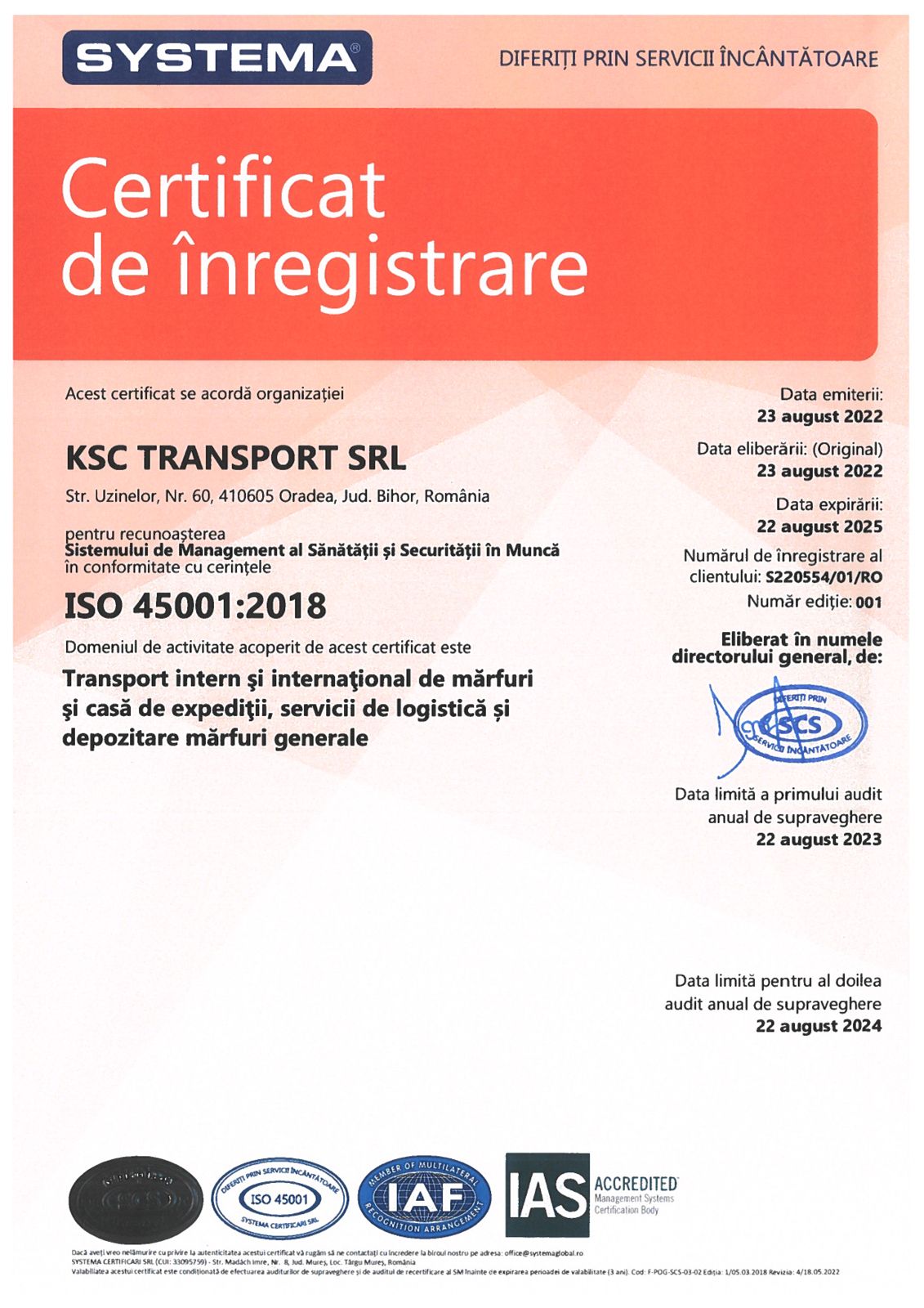 Deţinem certificare ISO 9001:2008, ISO 14001:2004, OHSAS 18001:2007